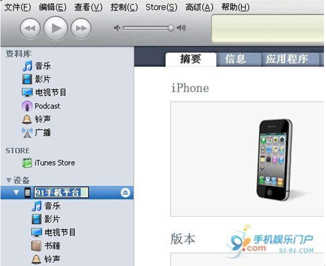 安装完毕后,当您的iPhone通过USB线缆连接到电脑PC端时,iTunes会自动启动(若未自动启动,请手动开启iTunes)。若您的iPhone已经激活,则iTunes会自动识别iPhone,并显示iPhone操作界面,如下图: