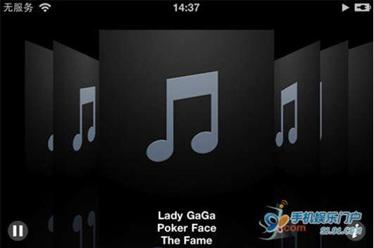 同步完成后,即可在iPhone的iPod中看到同步上去的音乐,带有图片的专辑也可在播放中看到专辑图片。