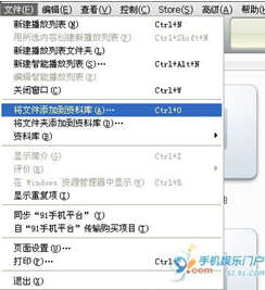 2.点击iTunes菜单中的“文件”选项,在下拉菜单中,可选择“将文件添加到资料库”及“将文件夹添加到资料库”两个选项。