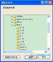 3.笔者以添加一个音乐专辑为例,进行操作,选择“将文件夹添加到资料库”选项,在弹出的“浏览文件夹”窗口中选择一个文件夹,点击“确定”后,iTunes会将该文件夹下的所有音乐文件导入到iTunes资料库中。