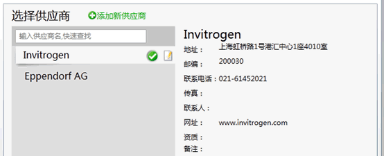 ● 列表默认显示所有供应商,可以在供应商搜索框中输入供应商名,快速检索相应的供应商。