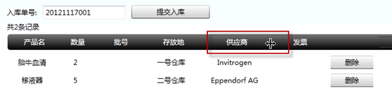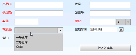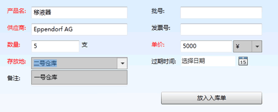 ● 点击“放入入库单”,即将该产品的入库信息暂存到入库单中,可以再编辑或删除。