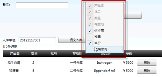 表头自定义:在列表字段名上右键鼠标,可以选择显示或取消更多字段,其中有些是默认显示的不可选。列表显示字段也会作为入库单打印字段。