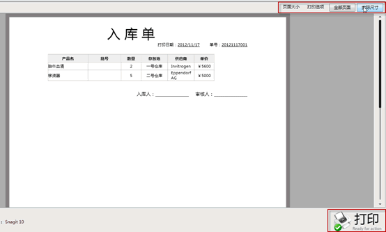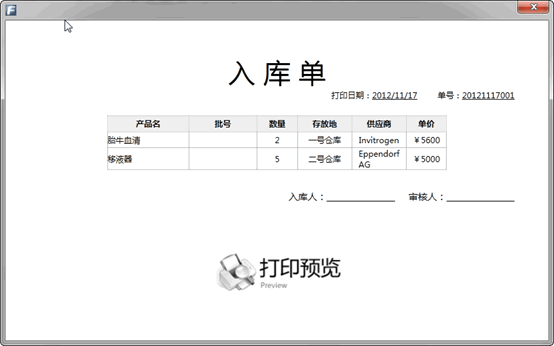 ● 确认无误可点击右下角“打印”按钮打印该入库单。