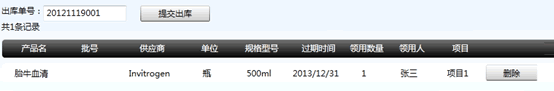 ● 点击“提交出库”可以将出库单中的记录一并提交保存。