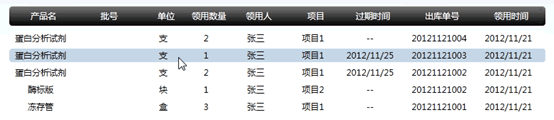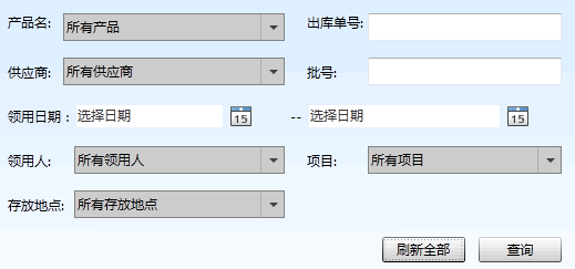 ● 通过左侧标签列表,或产品名,出库单号等筛选条件可以快速找到历史出库记录。