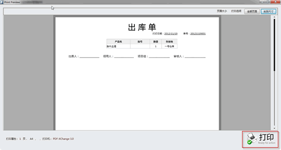 ● 保存成功后会跳至出库单打印,可以预览出库单并打印。