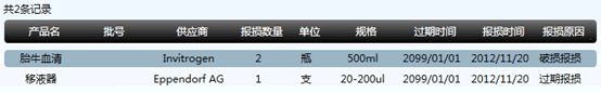 ● 通过左侧标签列表,或产品名,批号等可以快速查找所需的报损信息。