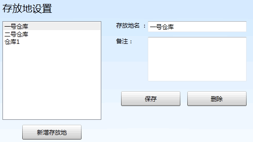 ● 用于登记库存的存放地相关信息,可以进行增,删,改。