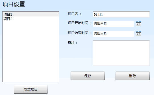 ● 用于登记试验相关项目信息,可以进行增,删,改