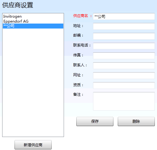 ● 用于登记产品相关供应商信息,可以进行增,删,改。