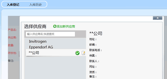 ● 供应商信息的新增或修改可以在产品入库时直接录入操作。