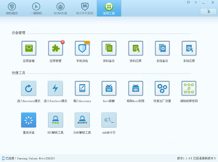刷机精灵还提供了大量的实用工具方便大家,在刷机、玩机中,可能会遇到系统备份还原,Root解锁,刷Recovery等问题。在刷机工具,会提供一些常用而实用的工具选项。