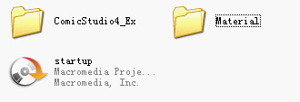 打开Comic Studio安装光盘的盘符,查看光盘中【Material】文件夹中的内容,将【Material】文件夹中的【Settings】文件夹拖到【C:\Program Files\CELSYS\ComicStudio4 EX】中的Comic Studio4 EX文件夹内,确定复制后素材就安装完成了。在Comic Studio中单击键盘F6显示【素材】窗口,即可查看、使用素材。