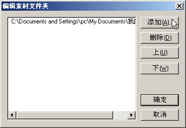 在弹出的【编辑素材文件夹】窗口中,单击【添加】按钮。