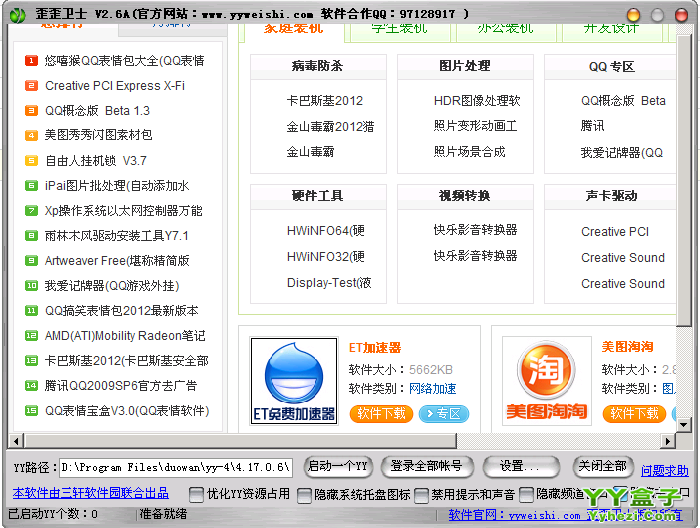 说到多开器,大家主要是需要一款免费的,无毒无插件,无限多开器稳定的多开器,还有一些辅助功能,批量登陆,自动送花,账户批量导入导出,自动改昵称签名等功能,所有我们选了市场上最主流的一款多开器 - YY卫士多开器;它不仅仅和歪歪盒子一样,通过了所有杀毒软件的检测,而且它在开发不到一年的时间里已经拥有了三千万的下载量,这点是任何一款多开器都做不到的成绩;这一点足以证明它的实用和功能性!