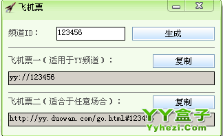 第二步就非常简单了,在频道id后面的输入框输入您需要生成频道的id号码吧,比如我的频道是123456就输入123456,这样我们是不是看到下面的格式以及发生了变化了,这样我们选择看需要哪种格式吧,点击复制就复制到剪切板了.之后就贴给朋友或者网友点击吧.