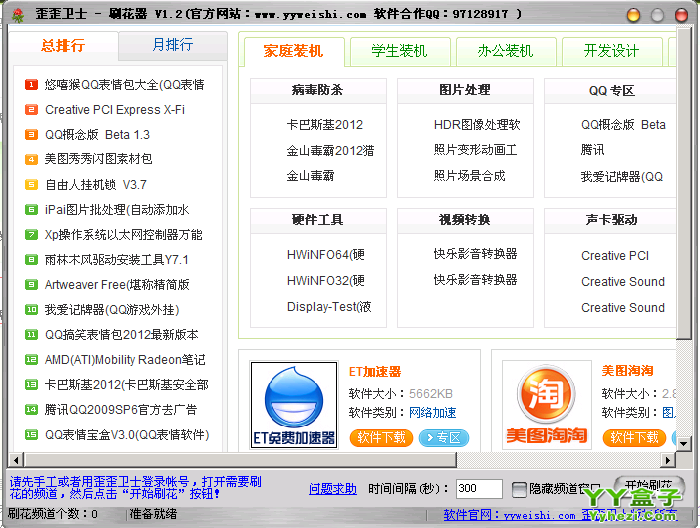 第二步:进入了歪歪卫士刷花器的主界面了!使用教程大家可以到yy卫士官方论坛查看,地址:http://www.yyweishi.com/bbs/thread-672-1-1.html