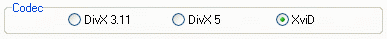 Codec选中XviD(DivX 3.11 和 DivX 5 感兴趣的朋友今后自己琢磨吧)