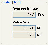 ▲还要观察一下Video的码率:以目前XviD的强大压缩能力,Average Bitrate超过700KBit/s就足够了;