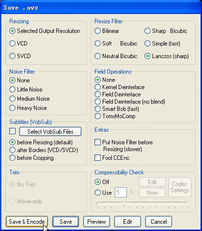 选择上图中的Save & Encode按钮,会跳出一个窗口,如下图: