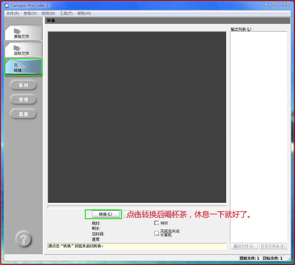 Canopus ProCoder 2简体中文版使用教程,看着我的图片,一步一步就可以完成转换了。