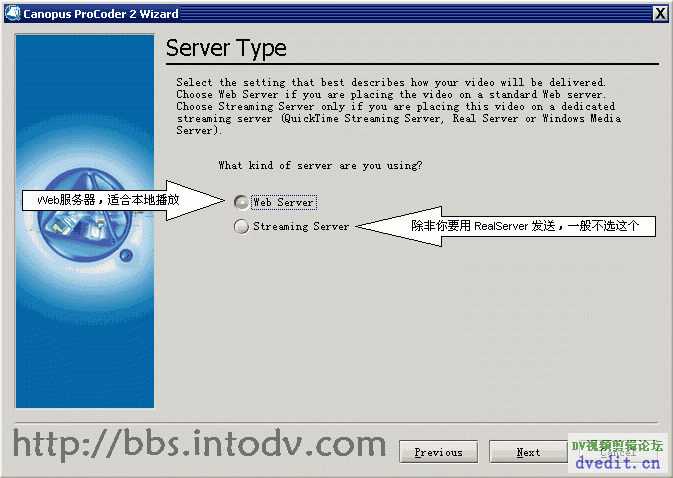 选择音频类型, 如果是新闻,就选语音, 如果是 MTV,电影,就选音乐。选择服务器,不管他,选择第一个 Web Server 就 OK 啦。