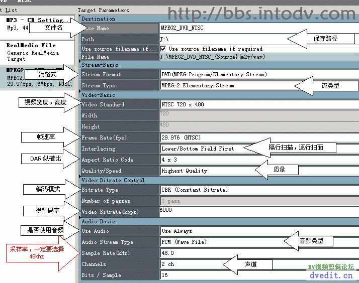 可以自定义更改,不过对于 DVD 来说,除了“编码模式”和“视频码率”可以更改外,其他最好不要更改,不然你的 DVD 机很可能认不出来。
