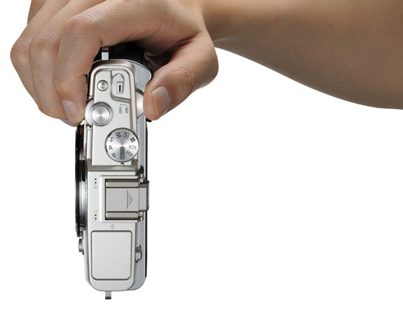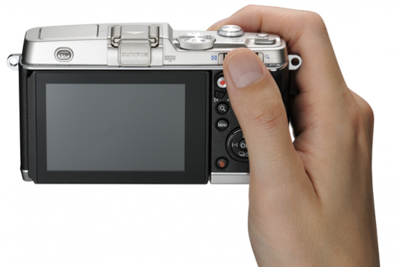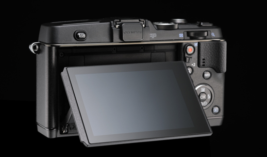 E-P5背面的LCD面板,可以倾斜并上翻80°或下翻50°。LCD也可作为1.48倍率的实时取景器。