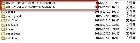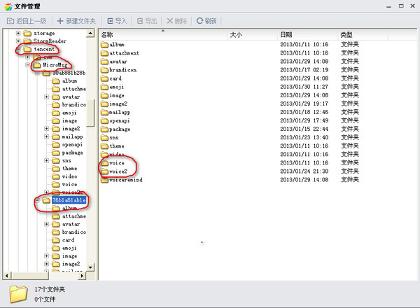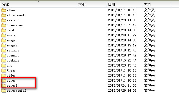 这两个文件夹是你登入过几个微信账所显示的,语音都藏在这里面了
