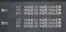 1个122q点、3个358q点、5个585q点,不过相对而言用紫钻购买要便宜些哦!