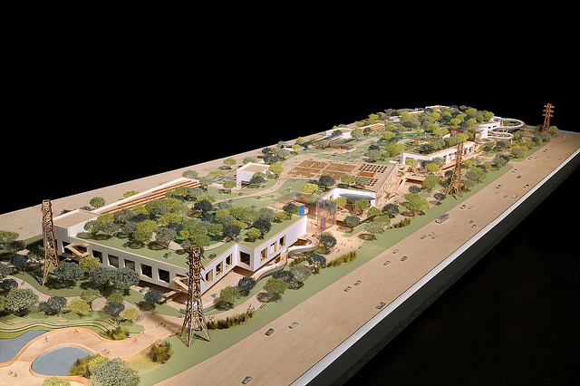 谷歌将在加利福尼亚州山景城建造新总部,谷歌希望员工能在2015年入驻这一占地面积达到110万平方英尺的建筑群Googleplex。新总部将包括方便员工流动的飞镖形建筑和天台花园等,设计上体现了环保节能概念。