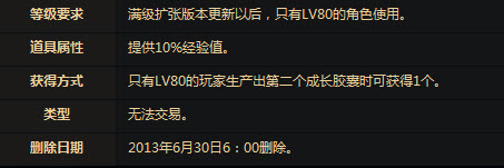 细心的朋友应该在上边的说明中看到了,真成长胶囊的作用是仅限LV80的角色在满级扩张以后使用,更新LV80以上的满级内容后,才能使用(真)成长胶囊。