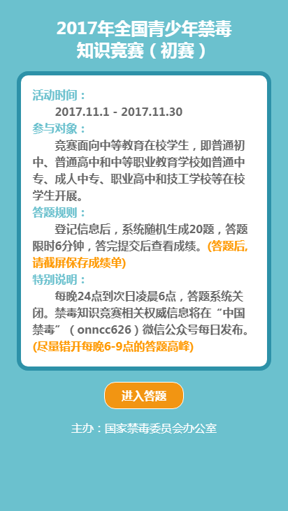 2017年全国青少年禁毒知识竞赛入口 2017年全国青少年禁毒知识竞赛(初赛)
