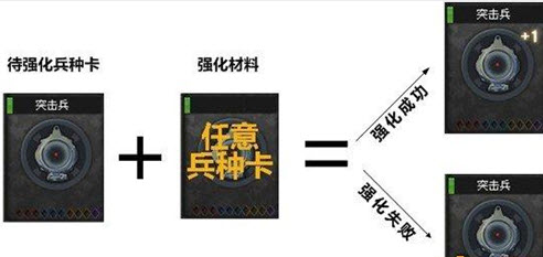 2.当你发现选择兵种卡的时候,有几张相同的卡片,不要认为这是系统错误,你可以把多余的兵种卡拿来合成。合成后会对兵种的属性进行提升。