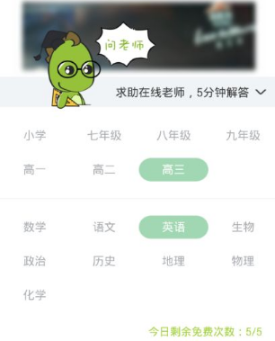 拍照上传之后可以直接点击求助在线老师,目前没有发现求助学霸这个按钮,直接求助老师会更快捷的!选择科目和年级,点击确定就ok了!