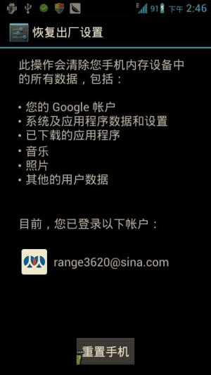 方法一:直接使用安卓手机设置中的“恢复出厂设置”功能,进入手机设置——恢复出厂设置,然后按手机提示操作即可。