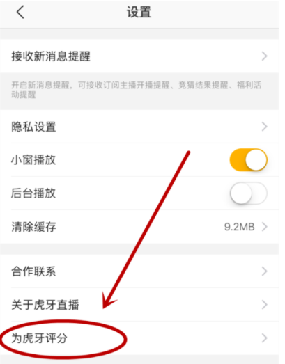 进入设置以后,在设置页面的下方找到“为虎牙评分”一项,然后点击进入。