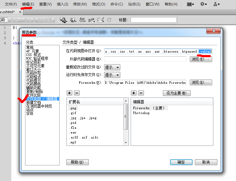 %Dreamweaver安装目录%\ configuration\documenttypes\mmdocumenttypes.xml