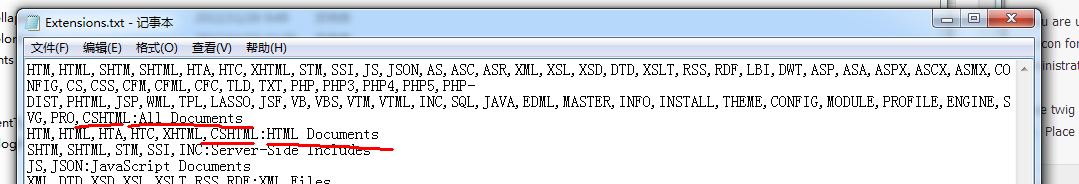 然后找到第一行和第二行的结尾, 其实就是 “ : All Documents ”结尾和“ : HTML Documents ”结尾,在这两个冒号前添加你的文件类型