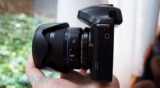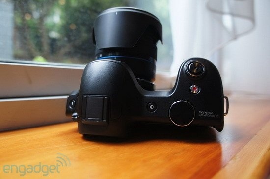三星Galaxy NX的机身大小介于数码单反与无反相机之间,但公平地说,作为一款无反相机,它要比主流机型壮硕了一些。不过手感还是不错的,尤其是舒适宽大的手柄。机身按键方面,可以看到大部分都集中在机身顶部,包括电源、快门、视频按键、闪光灯开启键以及模式拨盘。另外,镜头上也拥有一些按键设计,可以切换自动对焦或手动对焦模式,使用i-function按键调节拍摄参数等。另外相机也内置了闪光灯,并配备了热靴接口,可以连接更专业的外接闪光灯。