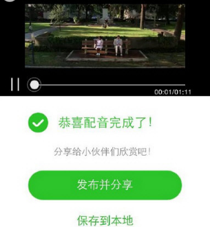 2、配音结束后进行配音预览,这时可以选择发布分享你的作品。