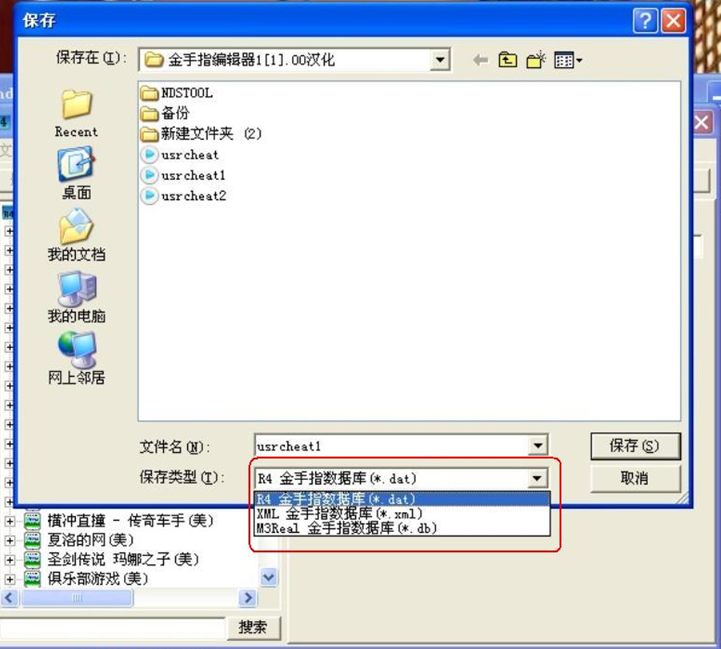 另外保存当前数据库到金手指数据库中,可选择.DAT