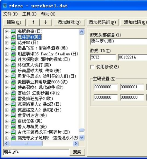 下方的“搜索”可用来思索“游戏名、代码组名、代码、游戏ID”