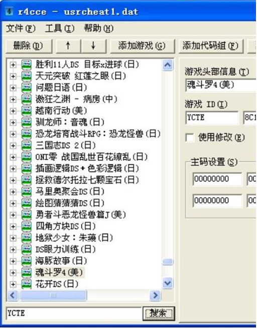 R4cce是日本网友Yasu开发的一款R4SD金手指数据库非官方编辑工具,支持金手指排序和搜索。另外由于R4本身就是使用的是被广泛使用的ARDS(Action Replay DS)的金手指代码,因此R4cce还可以输出其他支持ARDS金手指的烧录卡用的金手指数据库(比如M3Real、TTDS等等)以及输入和输出XML格式ARDS金手指数据库,更可输出加密的R4DS官方数据故CHEAT.DAT。