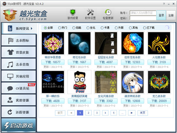 下面的背景皮肤,击杀音效的操作 和修改图标是一样的,都是直接下载 一键安装 启动游戏即可哦!真的是很方便