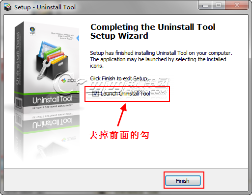 安装完毕后不要打开程序,将launch Uninstall Tool前面的勾去掉点击finish