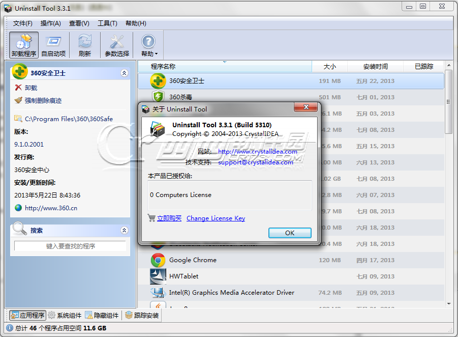 Uninstall Tool这款卸载软件相信有不少机油们用过,这款软件卸载程序非常的干净彻底,软件本身还带有管理系统随机启动程序工具,可以加快系统启动速度。这是一款收费软件,程序本身自带了中文界面。