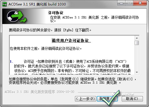 之后是用户协议,必须同意啊否则无法安装