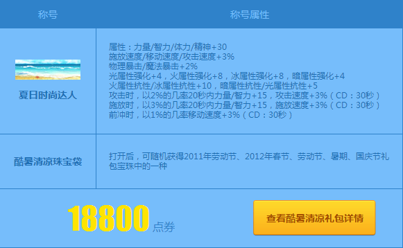 这次的真·夏日套礼包怎么看都是为了挽救F/Z套的销量惨淡而仓促赶工的,连礼包中的宝珠都沿用的往年礼包的宝珠,称号加的那点属性实在没法看。